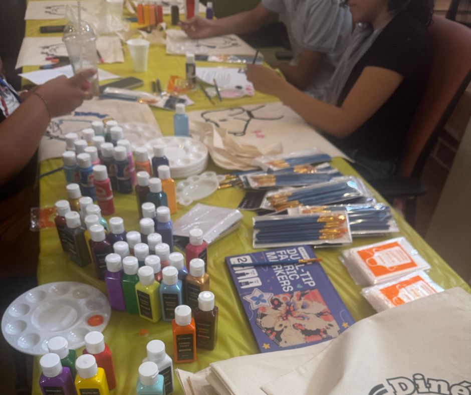 Next, Oddonniss joined the Paint + Talk event, hosted by the Student Wellness Center. Students gathered in a talking circle, sharing their thoughts on the first month of school while painting custom Diné College tote bags. His photos captured the quiet focus of painting, the joy of conversation, and the creativity students brought to the canvas.