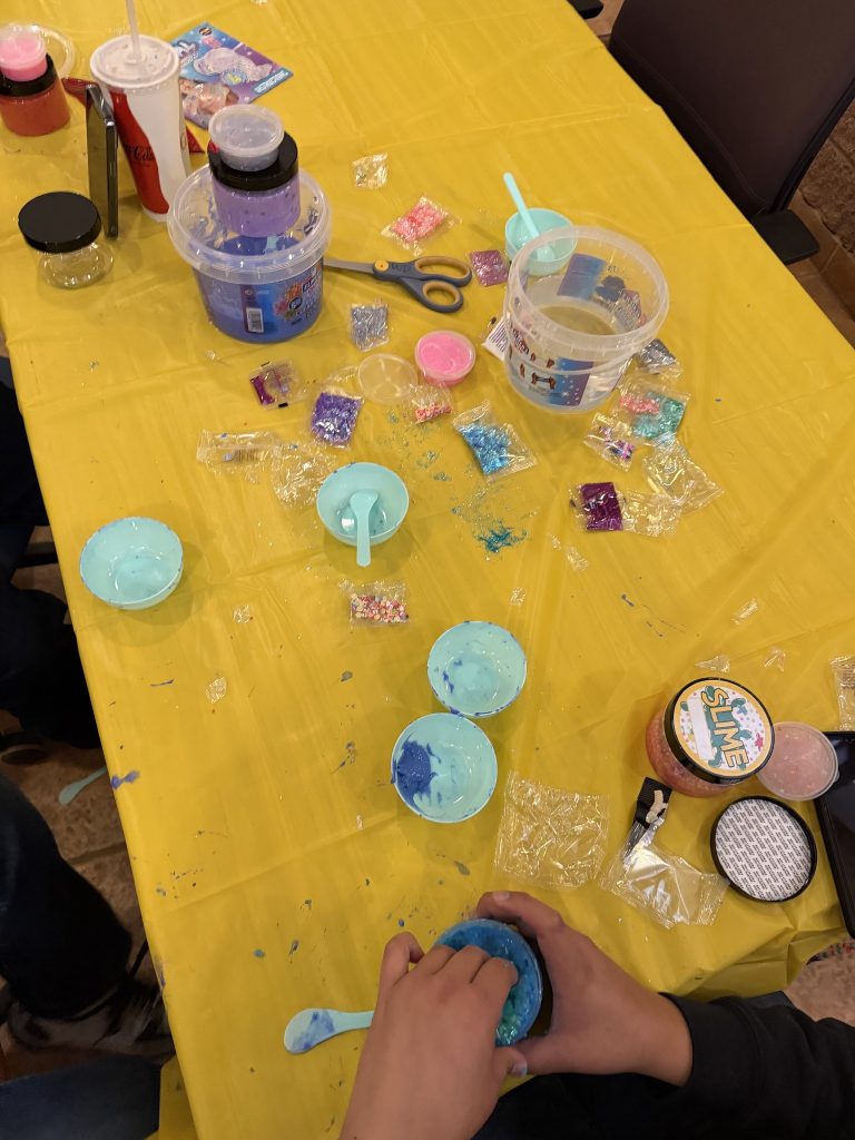 Students got make their own slime. Plus there was play dough and kinetic sand to relieve stress before finals.